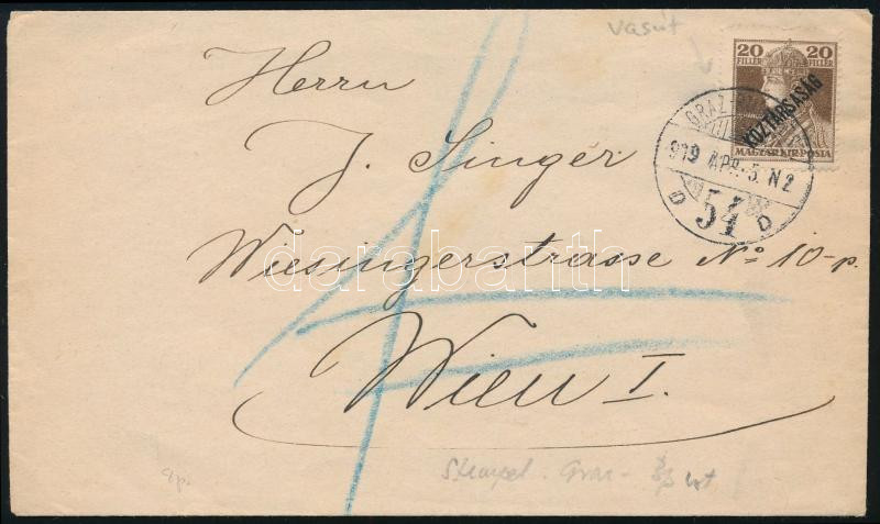 1919 Levél "GRAZ-BUDAPEST" vasúti bélyegzéssel / Cover with railway postmark (Image)(Image 1)