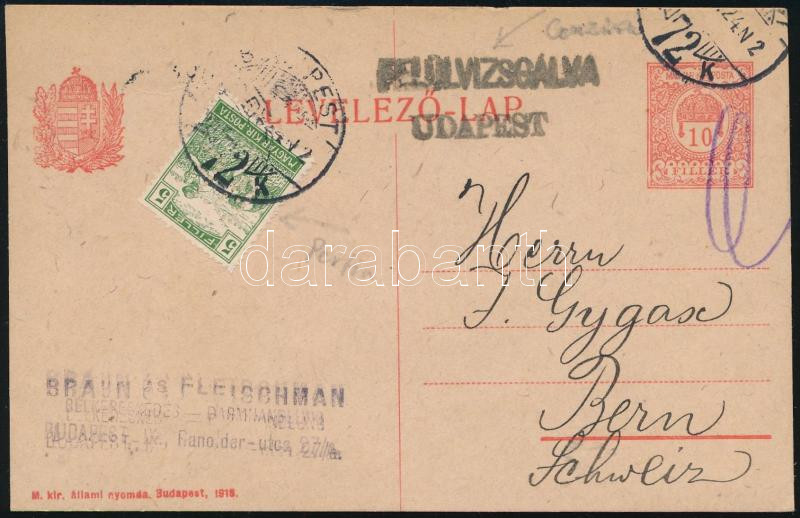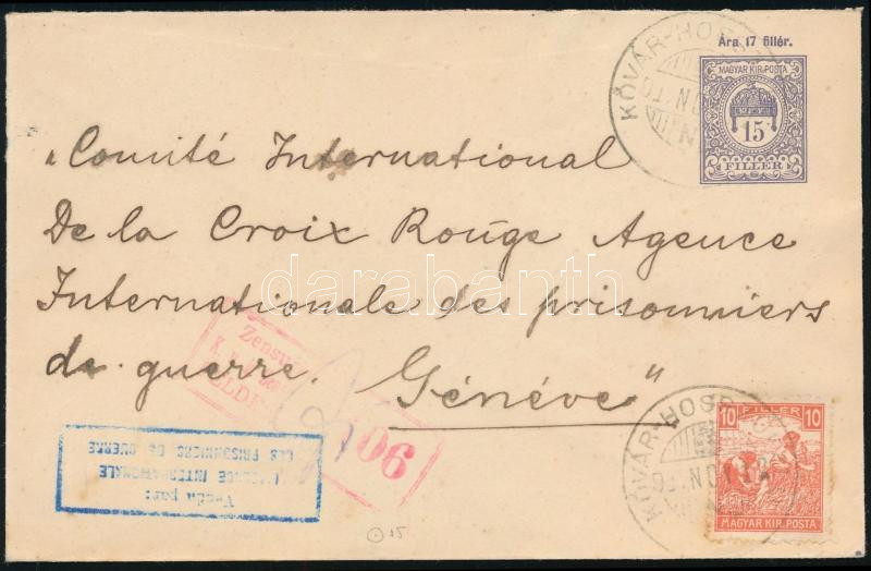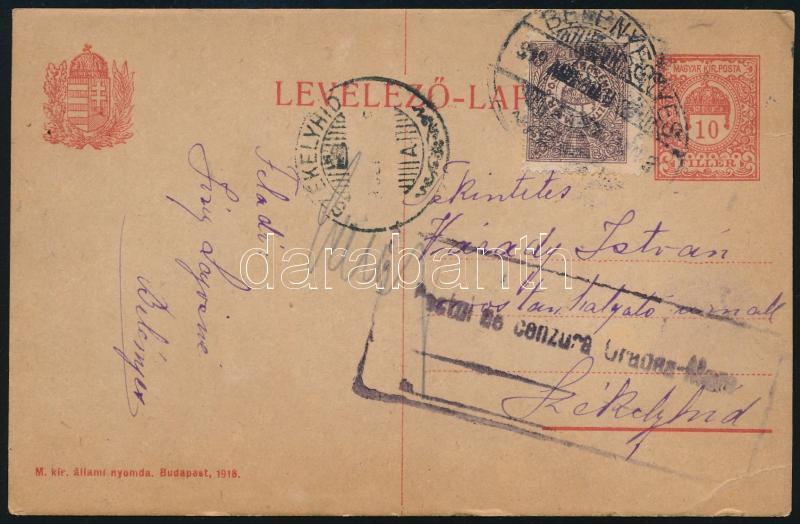 1919 Díjkiegészített díjjegyes cenzúrázott boríték "KŐVÁR-HOSSZÚFALU" / Censored PS-cover with additional franking (Image)(Image 1)