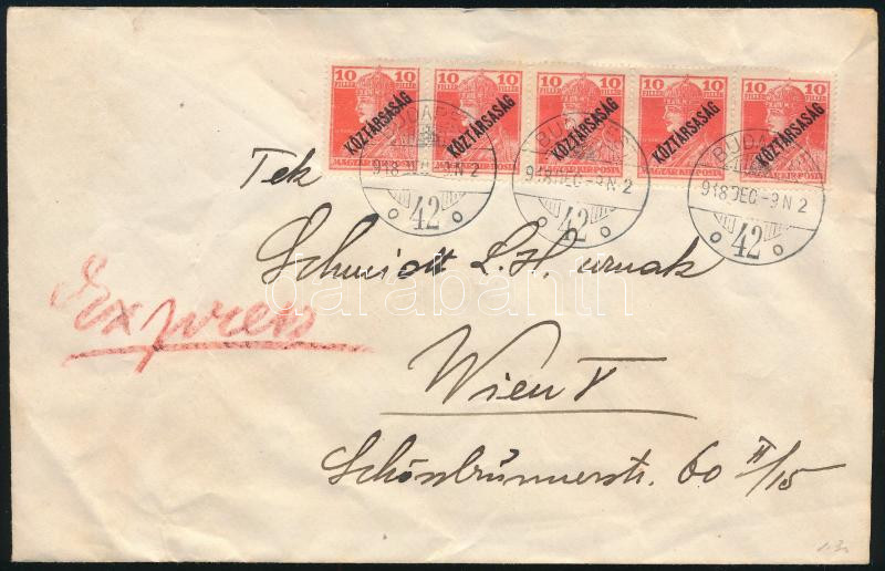 1918 Expressz levél Bécsbe 5 db bélyeggel (hátoldalon további 5 db kezeletlen bélyeggel) / Express cover with 5 stamps to Vienna (5 unused stamp on the backside) (Image)(Image 1)