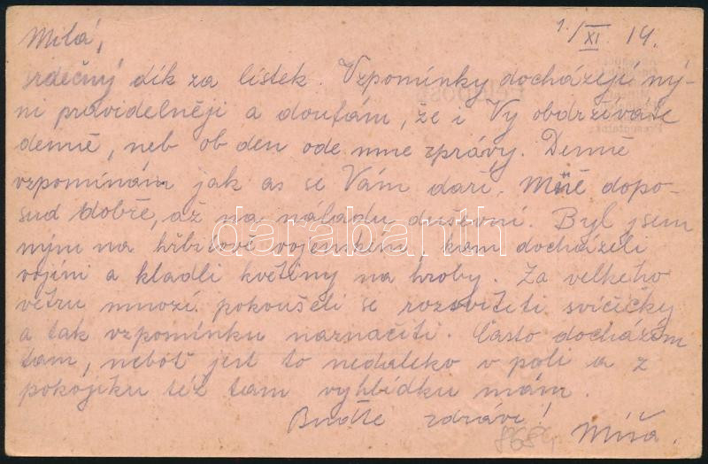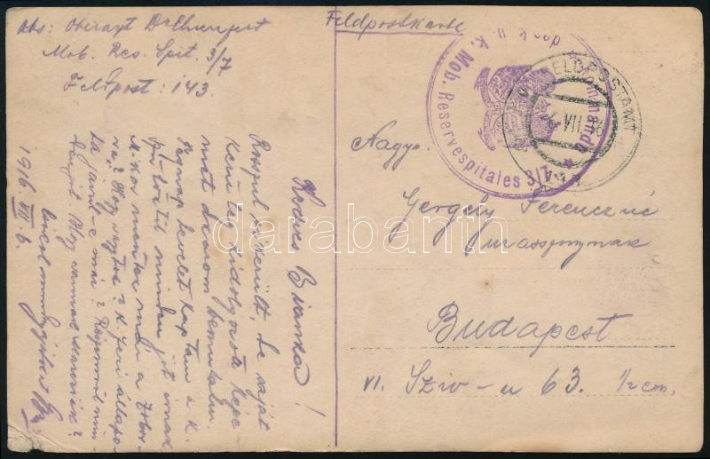 1916 Tábori posta képeslap / Field postcard "Kommando / des k.u.k. Mob. Reservespitales 3/4" (Image)(Image 1)