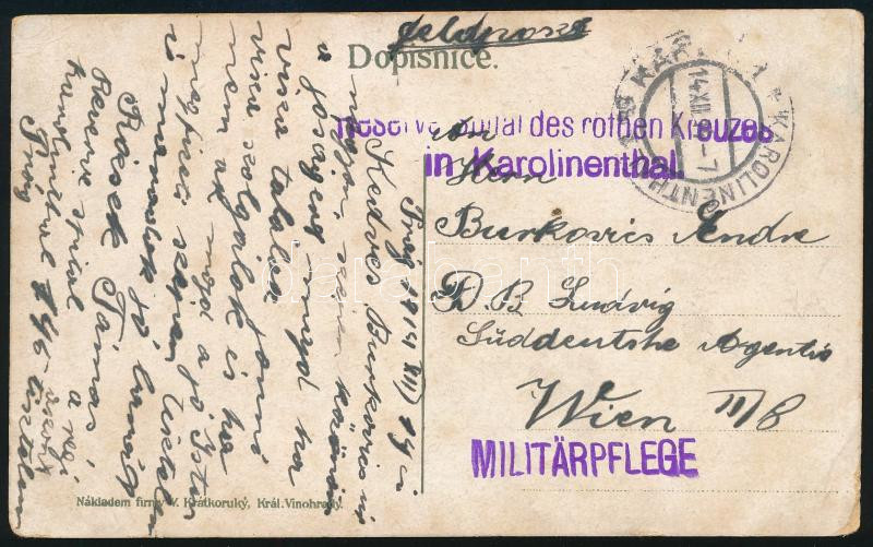1914 Tábori posta képeslap / Field postcard "Reservespital des rothen kreuzes in Karolinenthal" + "FP 283" (Image)(Image 1)