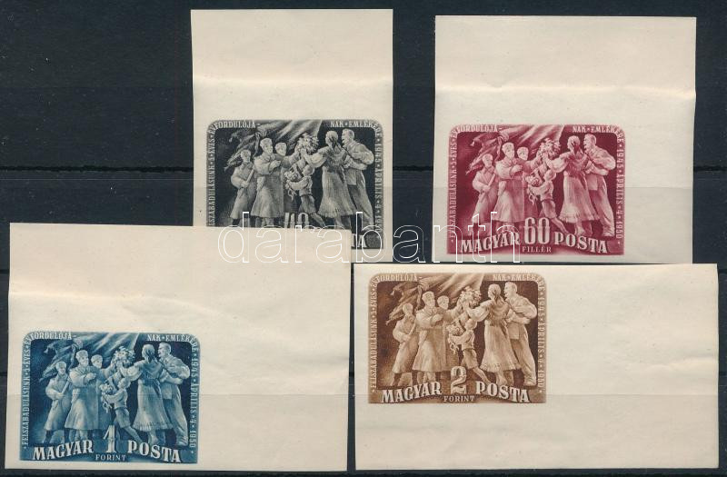 1950 Felszabadulás II. ívszéli vágott sor (16.000) / Mi 1088-1091 imperforate margin set (Image)(Image 1)