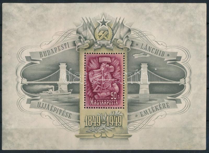 1949 Lánchíd III. blokk (kis ráncok, kis fekete csík, apró foltok a gumiban) / Mi 17 block (small creases, short black stripe, tiny spots in gum) (140.000)