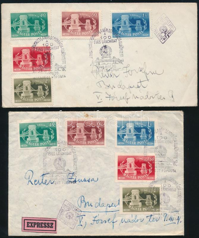 1949 Lánchíd fogazott és vágott sor 2 db FDC-n / Mi 1059-1063 perforate and imperforate set on 2 FDC's (Image)(Image 1)