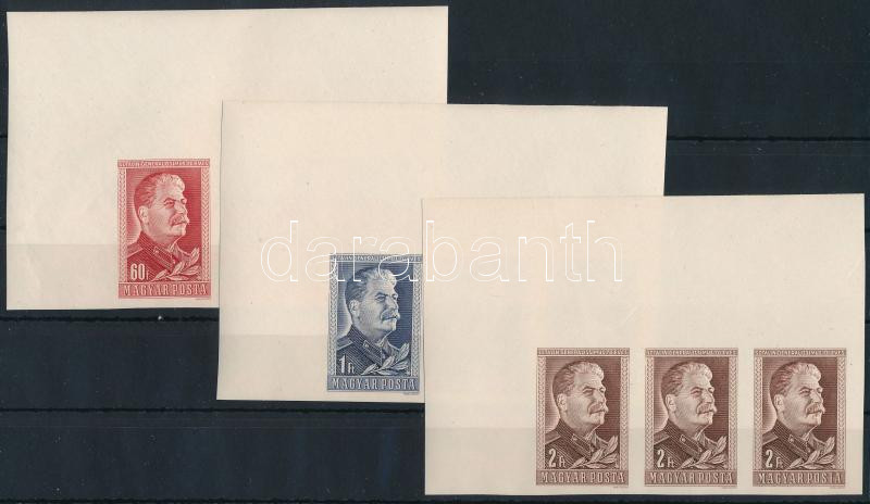 1949 Sztálin ívsarki vágott sor a 9-es tömbből (60f ránc) / Mi 1066-1068 imperforate corner set (60f crease) (Image)(Image 1)
