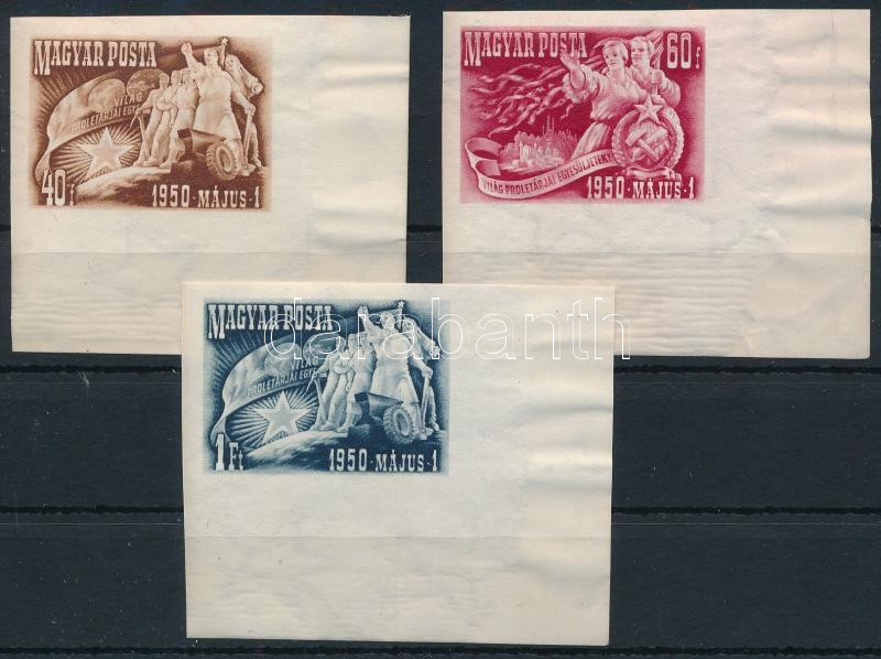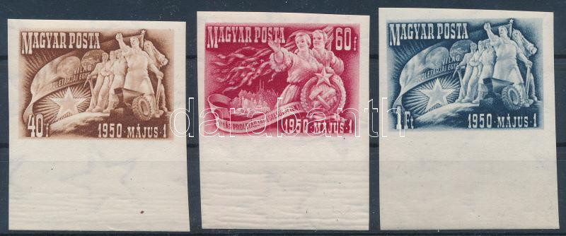 1950 Május 1. I. vágott ívszéli sor (17.000) / Mi 1095-1097 imperforate margin set (Image)(Image 1)
