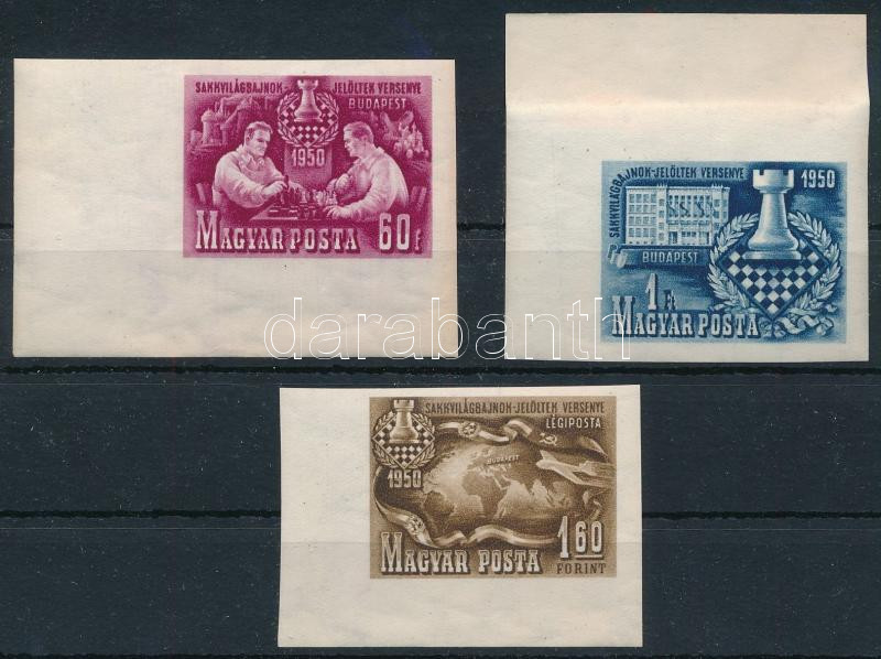 1950 Sakk I. vágott ívszéli sor (60.000) / Mi 1092-1094 imperforated margin set (Image)(Image 1)