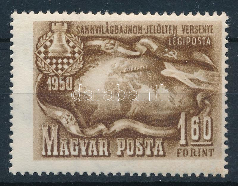 1950 Sakk 1,60Ft c. számvízjelállással (16.000) / Mi 1094 number in the watermark, position: c. (Image)(Image 1)