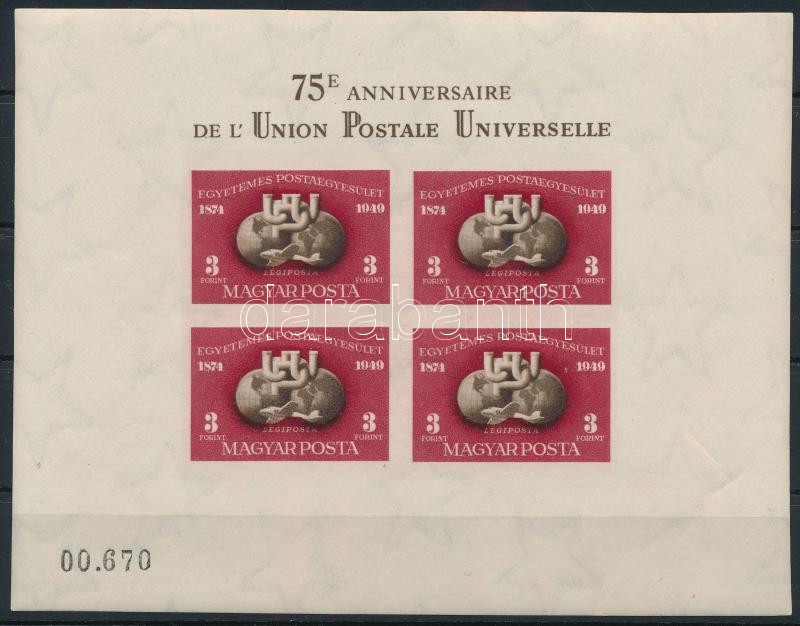 1950 UPU I. vágott blokk (kis törés) / Mi 18 imperforated block (220.000) (small fold) (Image)(Image 1)