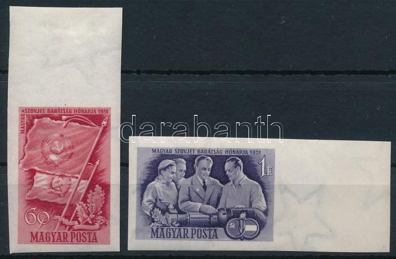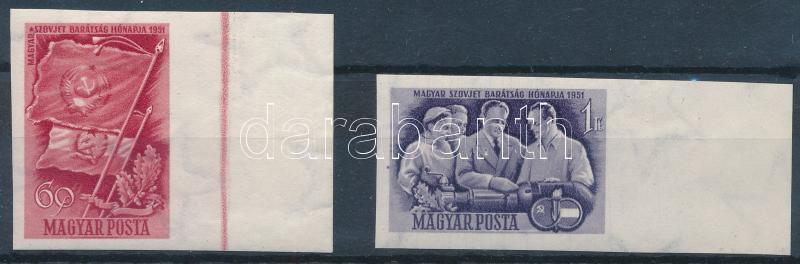 1951 Magyar-szovjet barátság ívszéli vágott sor (9.000) / Mi 1158-1159 imperforate margin set (Image)(Image 1)