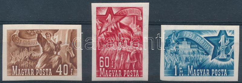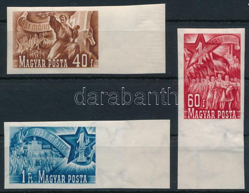 1951 Május 1. (II.) ívszéli vágott sor (9.000) / Mi 1160-1162 imperforate margin set (Image)(Image 1)