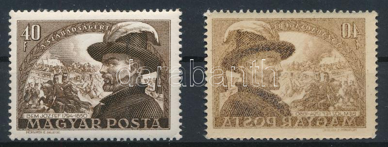 1950 Bem József I. 40f teljes gépszínátnyomattal + támpéldány / Mi 1142 with complete machine offset (Image)(Image 1)