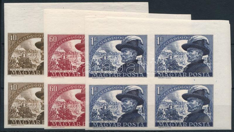 1950 Bem József I. vágott sor ívsarki négyestömbökben (28.000) / Mi 1142-1144 imperforated set in corner blocks of 4 (Image)(Image 1)