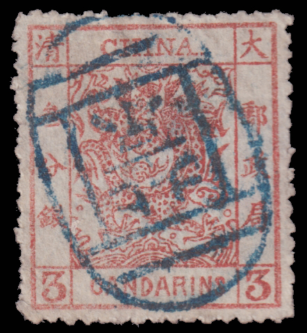 11 Mi:2 III, SG:8 image1883 Large Dragon thick paper 3ca brown red with Customs Peking seal. 1883 大龙厚纸光齿叁分银旧盖北京海关中文戳. (Image)