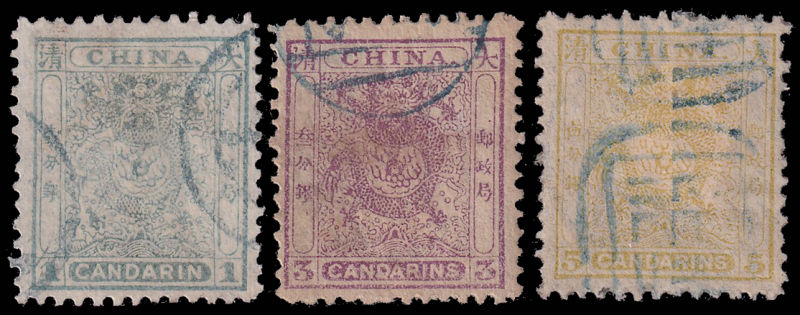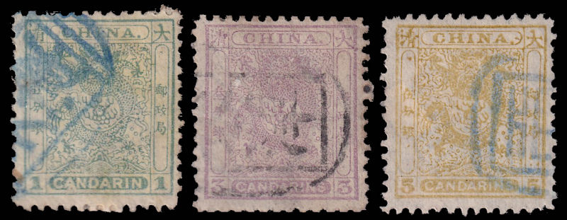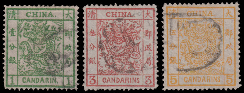 1 Mi:1-3 I, SG:1-3 image1878 Large Dragon thin paper set fine used. 1878 大龙薄纸3枚全旧. (Image)