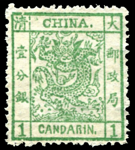 2 (★) Mi:1 I, SG:1 image1878 Large Dragon 1ca green thin paper. No gum. 1878 大龙壹分银绿薄纸新无胶. (Image)