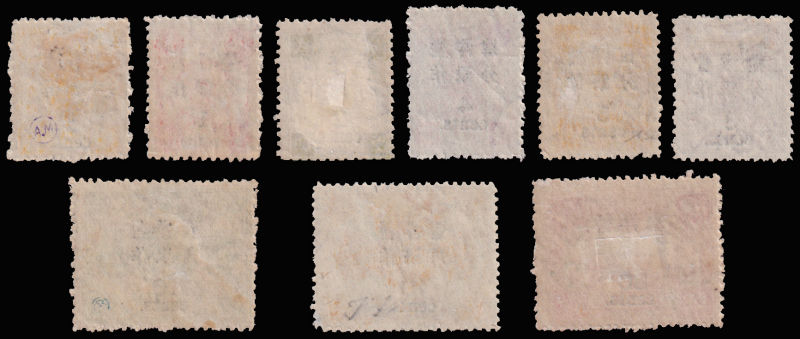 28 Mi:16-25 IIIb, SG:57-65 image1897 Surch. large figure wide spaced on 2nd print Dowager Jubilee set, 8c/6ca no gum. Very fresh colors. 1897 再版慈寿纪念票加盖大字长距离9枚全新,其中8c/6ca无胶,其余原胶贴纸,颜色鲜艳. (Image) (image11) (All Images)