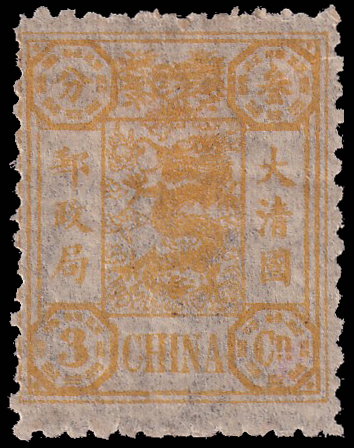 26 Mi:9c, SG:27 image1897 2nd print Empress Dowager Jubilee 3 ca Chrome yellow. Chan:24S cv $600 1897 慈寿再版纪念票叁分新, 陈目24S $600. (Image)