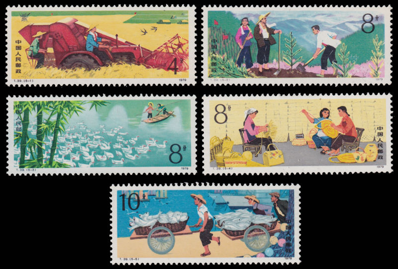 1979 五业兴旺5枚全新带上厂铭边纸. (Image)