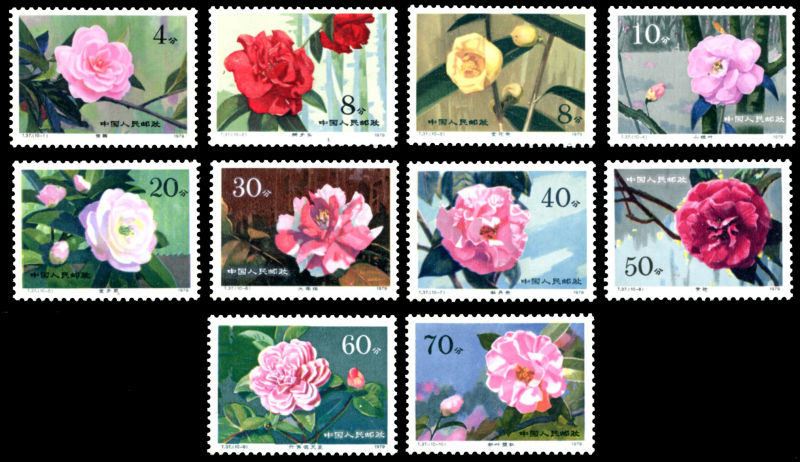 1979 T37云南山茶花10枚全新带色标边纸. (Image)