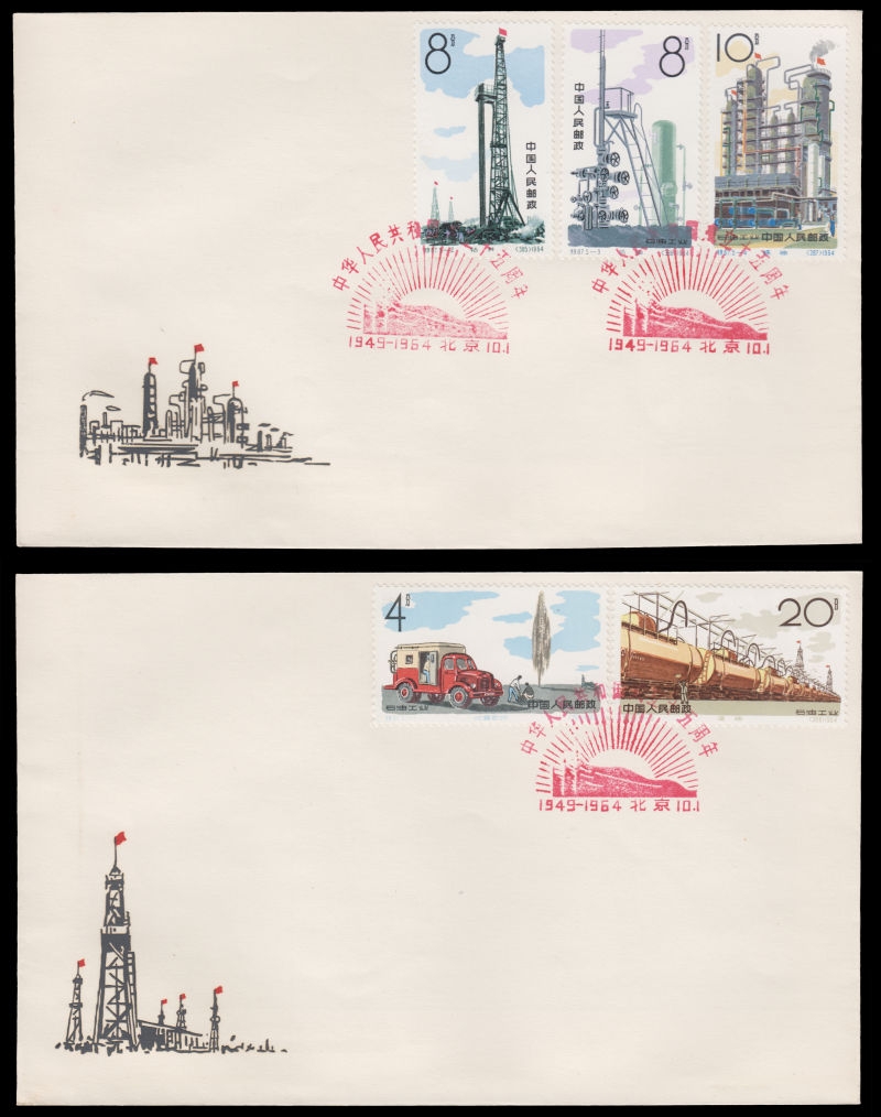 591 FDC Mi:827-31, SG:2216-20 image1964 Oil Industry set on FDC´s issued by China Philatelic Company, unaddressed. 1964 特67石油工业5枚全中国集邮公司首日封, 未实寄. (Image)