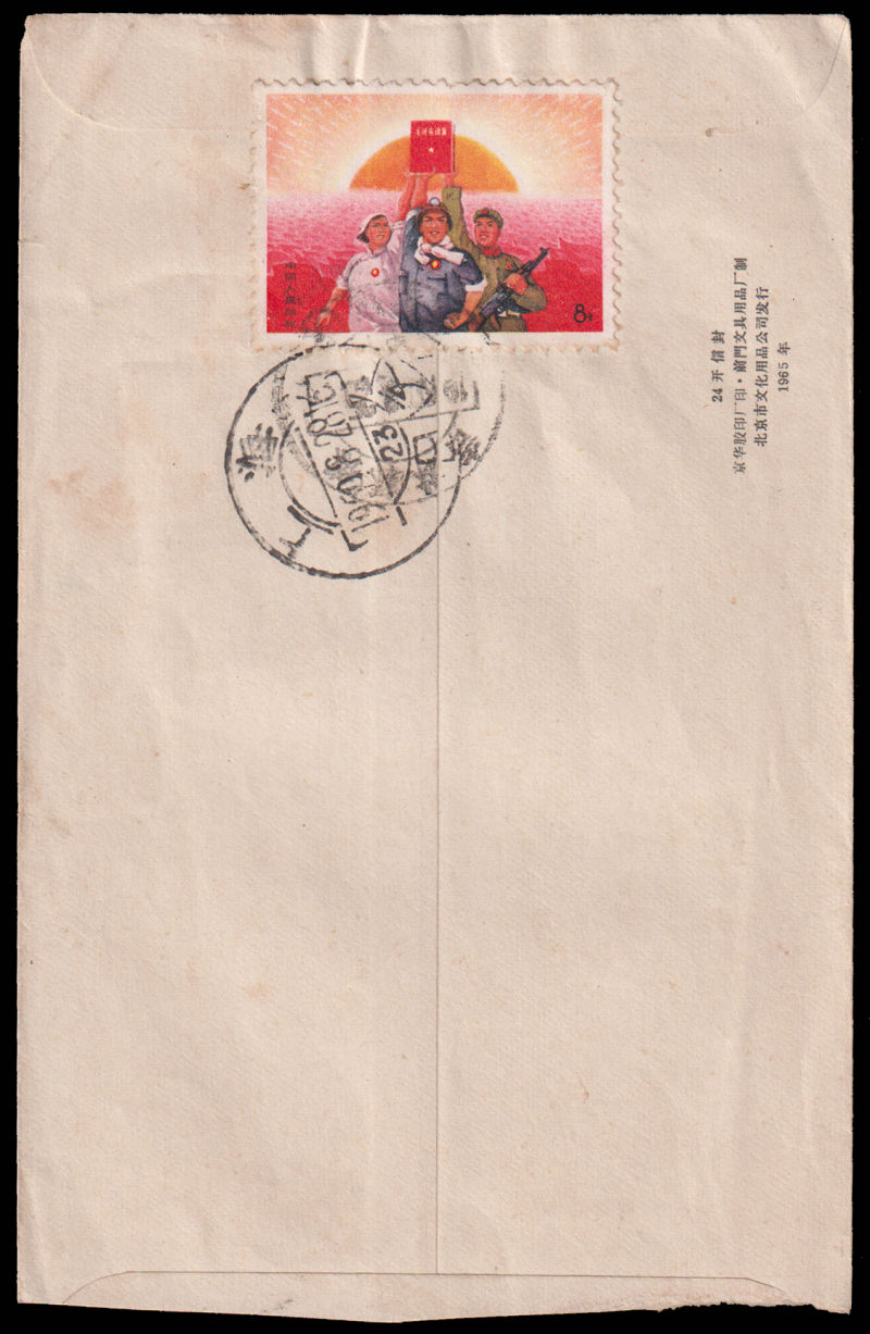593 c   image1969 Aug. 25 Illustrated domestic cover sent from Jilin Huaide to Shanghai, franked with 8f W15, with Shanghai arrival cds alongside. 1969 年8月25日吉林怀德寄上海美术封, 背贴文15票, 旁盖上海到达戳. (Image) (image11) (All Images)
