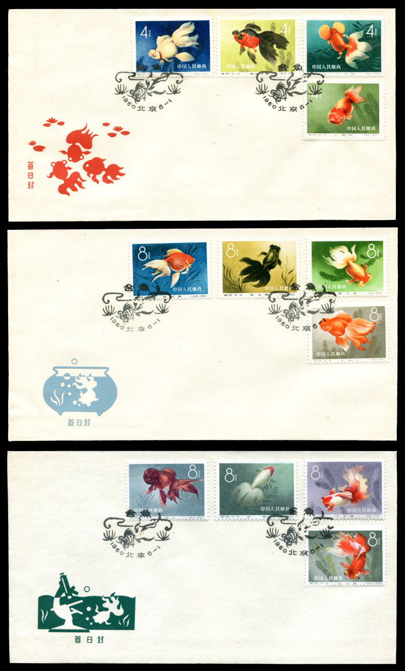 585 FDC Mi:534-45, SG:1911-22 image1960 Goldfish set on official FDC's unaddressed. VF 1960 特38金鱼12枚全总公司首日封未实寄. (Image)