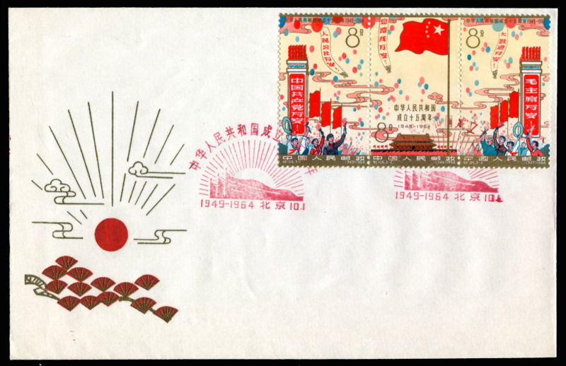 590 FDC Mi:824-26, SG:2213-15 image1964 15th Anniv. of PRC set on FDC issued by China Philatelic Company, unaddressed. 1964 纪106建国十五周年3枚全中国集邮总公司首日封, 未实寄. (Image)