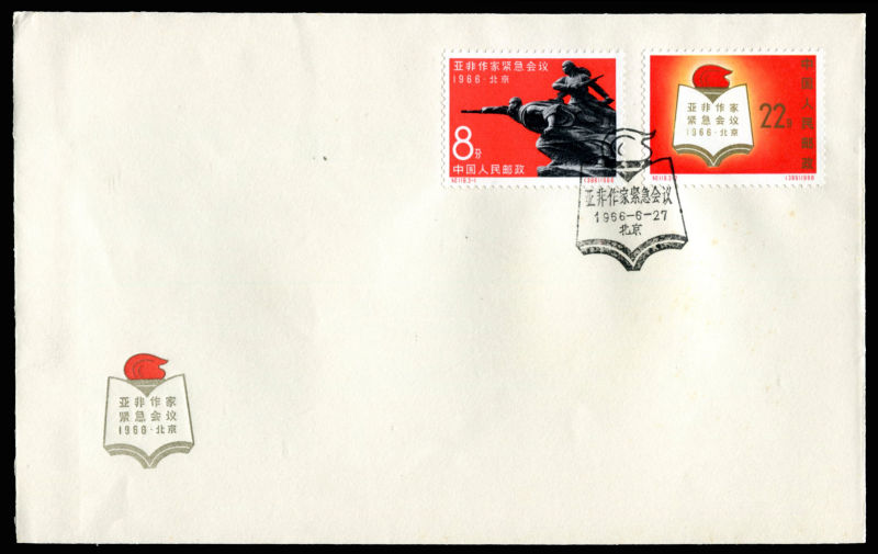 592 FDC Mi:945-46, SG:2322-23 image1966 Afro-Asian Writes Meeting set on FDC issued by China Philatelic Company, unaddressed. 1966 纪119亚非作家紧急会议2枚全中国集邮总公司首日封,未实寄. (Image)