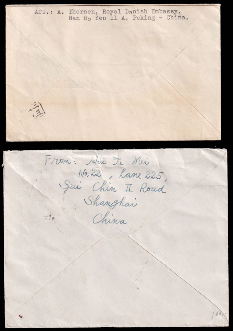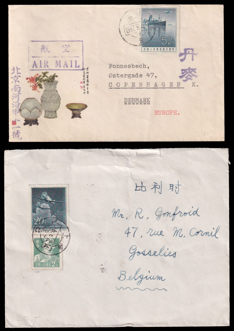 587 c   image1961 Two covers sent to Denmark and Belgium respectively, franked with airmail stamps. 1961 两枚贴航空票封,分别寄丹麦和比利时. (Image) (image11) (All Images)