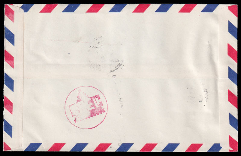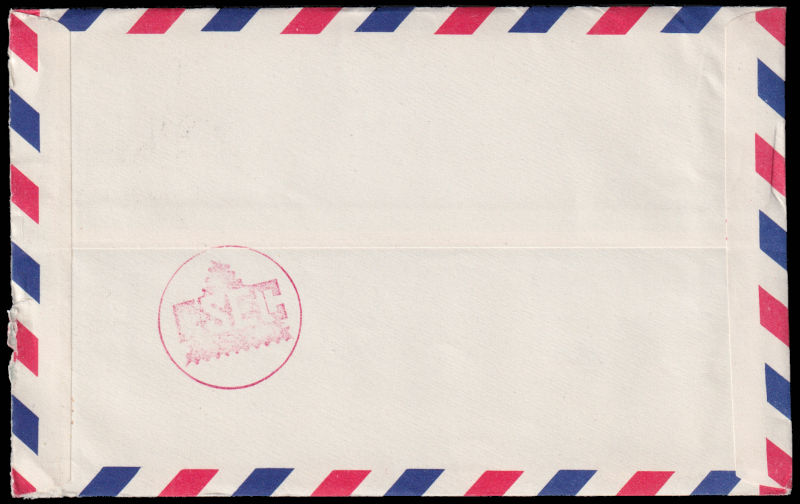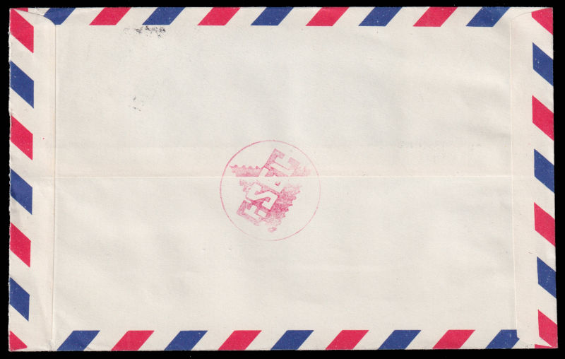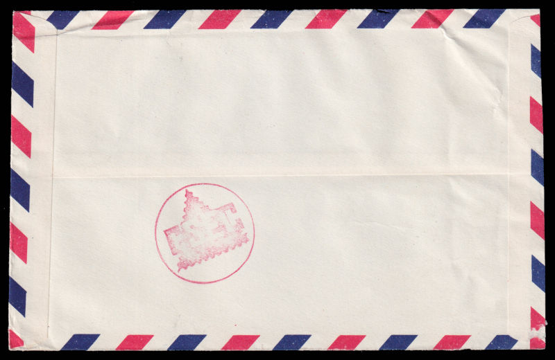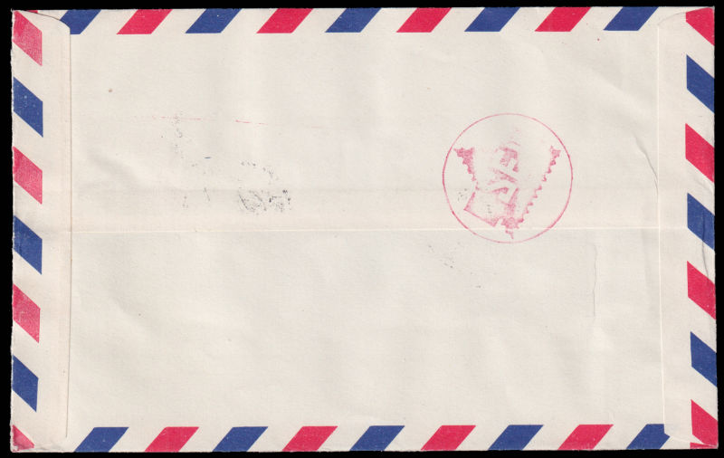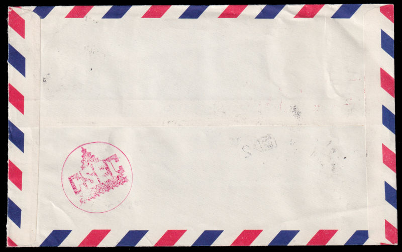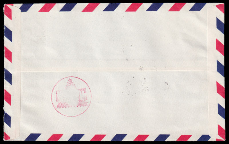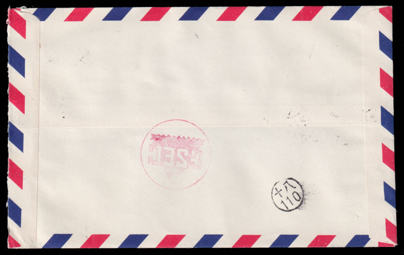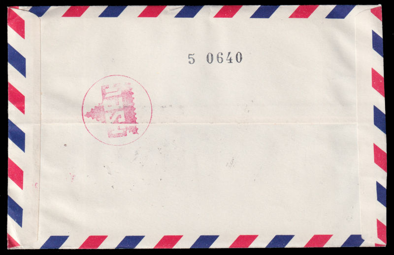 618 c   image1952 Airmail cover sent from Taipei to USA, franked with $5 Chiang Kai-shek and Zheng Chenggong stamps. 1952 年台北寄美国航空封, 贴蒋总统复行视事纪念票5圆和郑成功肆角及壹圆票. (Image) (image11) (All Images)