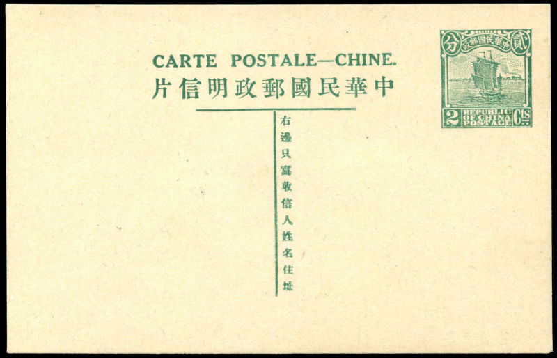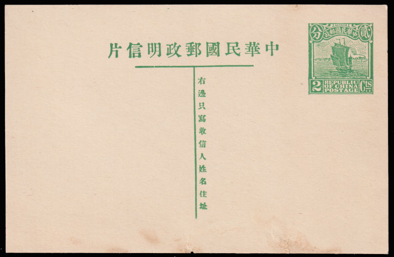 1926 第五版帆船贰分邮资片新. (Image)