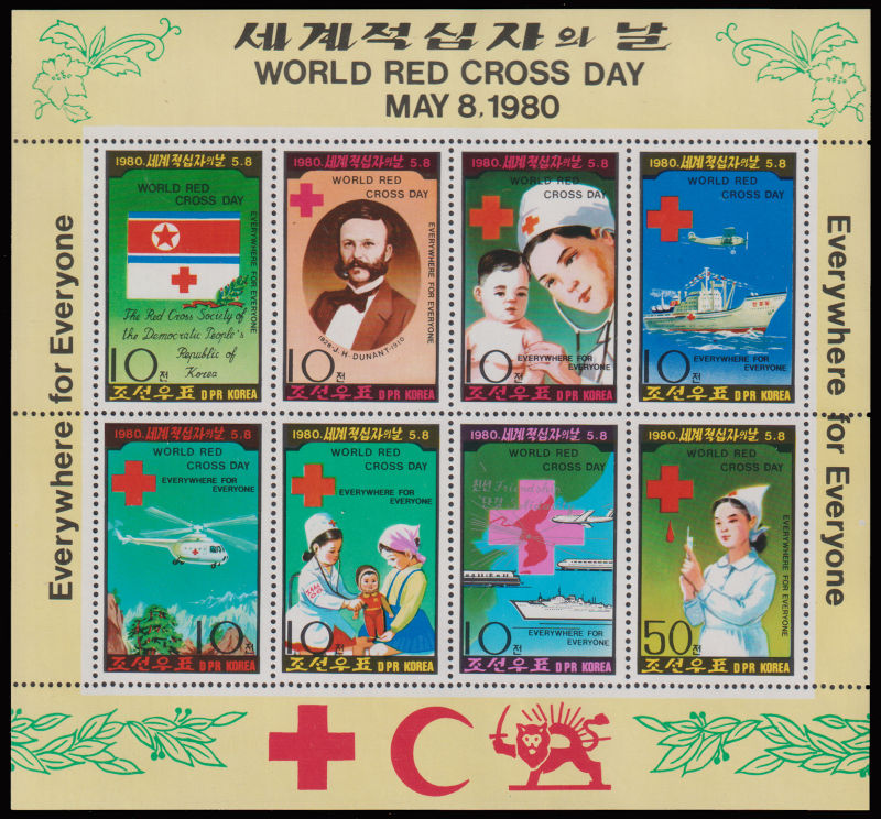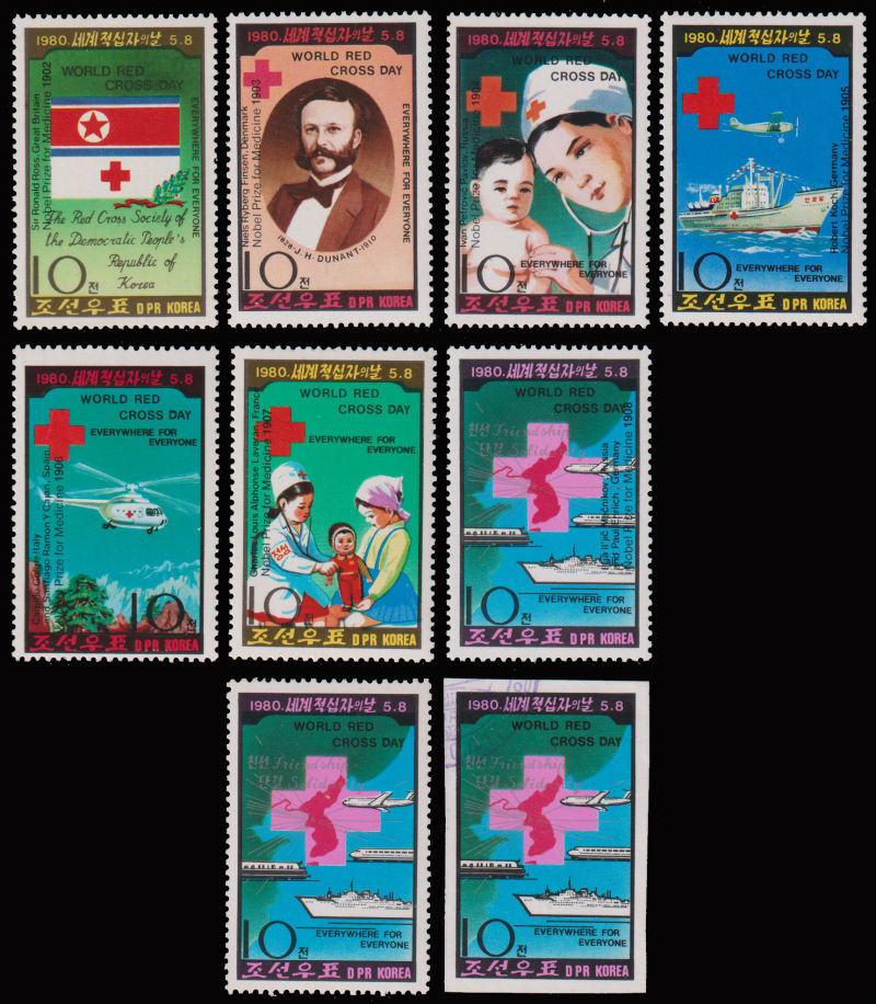 1980 World Red Cross Day set in sheetlet and a set with Nobel Price overprint, plus extra single stamp both perforated and imperforated(used). (Image) (image11)