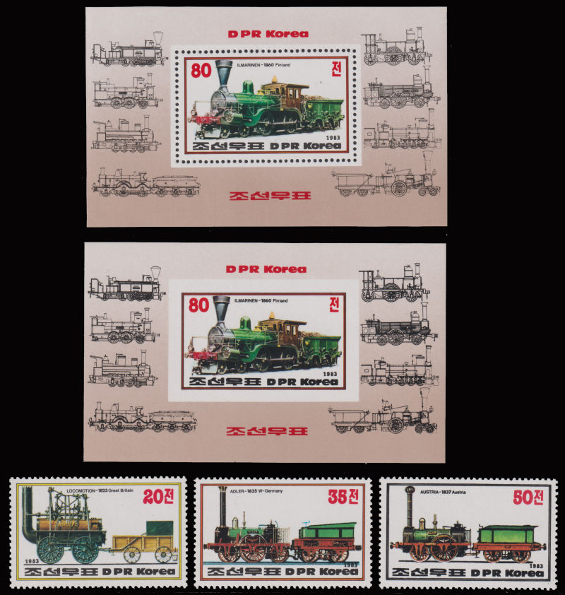 1983 Railway Locomotives set, MS and a sheetlets both perforated and imperforated. (Image) (image11)