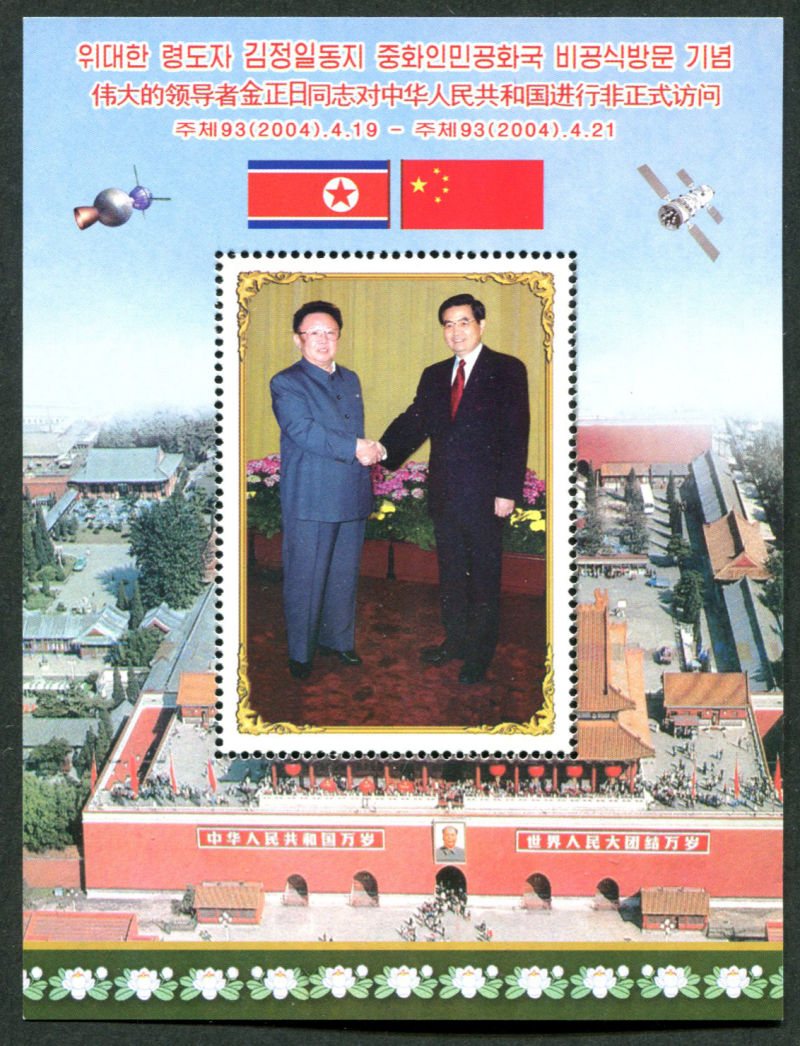 2004 Kim Jong Il visit to Chima MS with missing text and value on stamp. (Image)