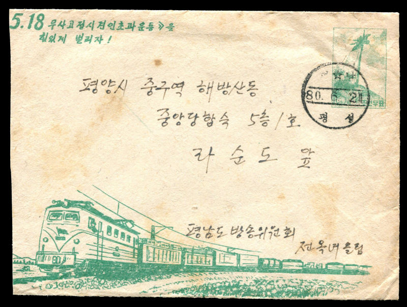 1980 Jun. 21 Pre-stamped 10ch Monument envelope with Railway design, domestic used with arrival cds on reverse.