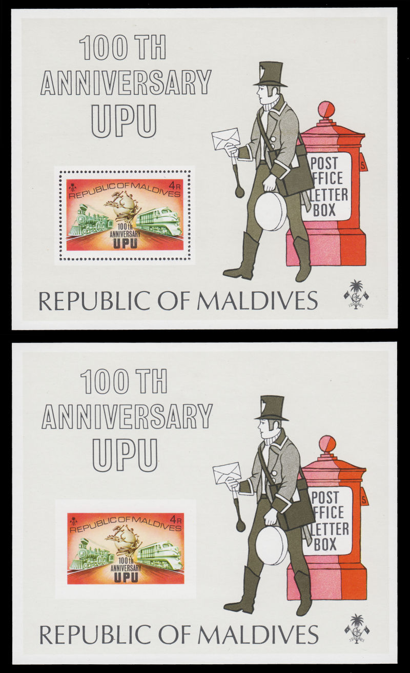 826 ★★   image1974 MALDIVE ISLANDS Centenary of UPU set of 6 and both perf. imperforated MS. (Image) (image11) (All Images)