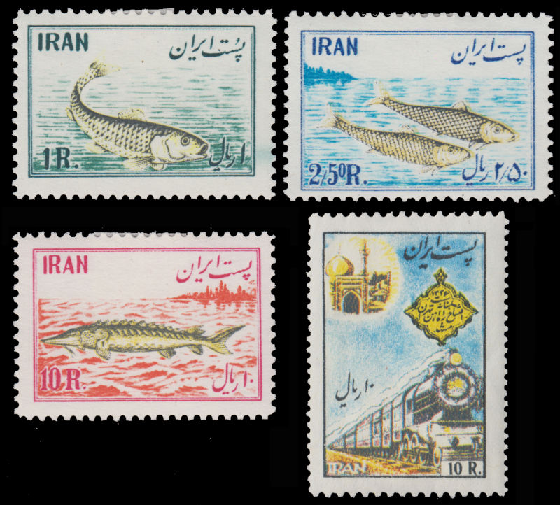 827 ★/★★   imagePERSIA 1954 Mi:898-99,902 Fish Industry mounted mint, 1957 Mi:995 Train 10R unmounted mint. (Image)