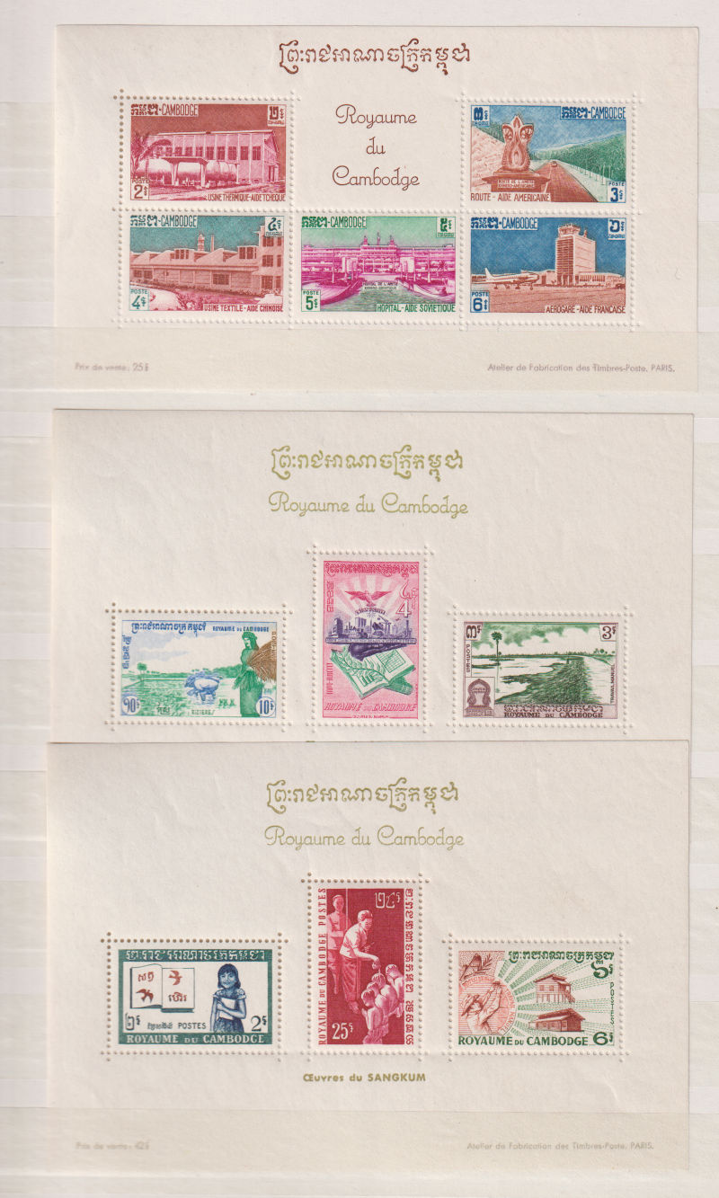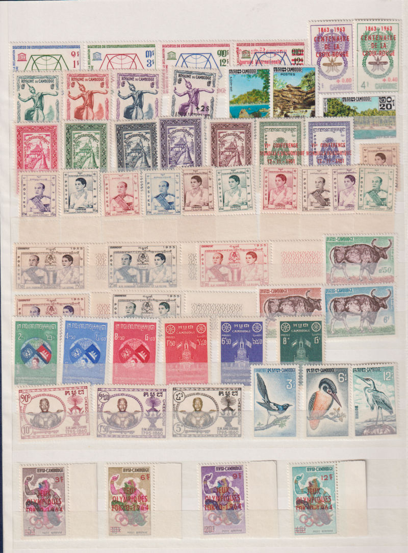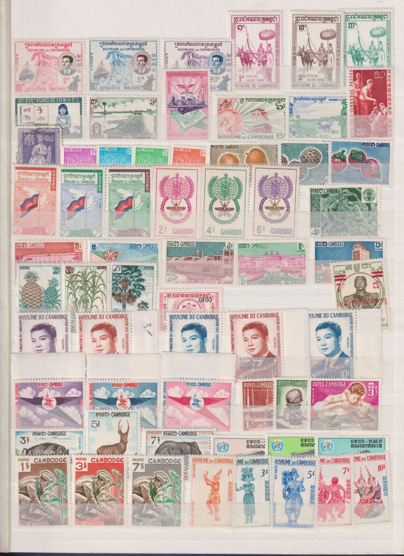 822 ★★/★   imageCAMBODIA Accumulation on 5 album pages with many complete sets and 4 MS, some overprinted. (Image) (image11) (image21) (image31) (image41) (All Images)