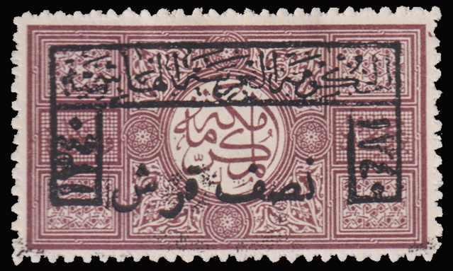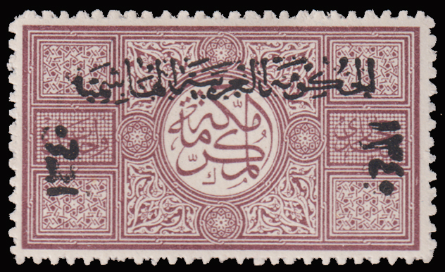 837   imageHEJAZ 1922 Mi:28, Sc:L30 1pi on 1pa with additional overprint. (Image)