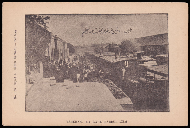 828 PSC   imageIRAN 1893 Nasser-eddin Sbab Portrait 4ch unused, on back with view of Train Station in Tehran. Unused. (Image) (image11) (All Images)