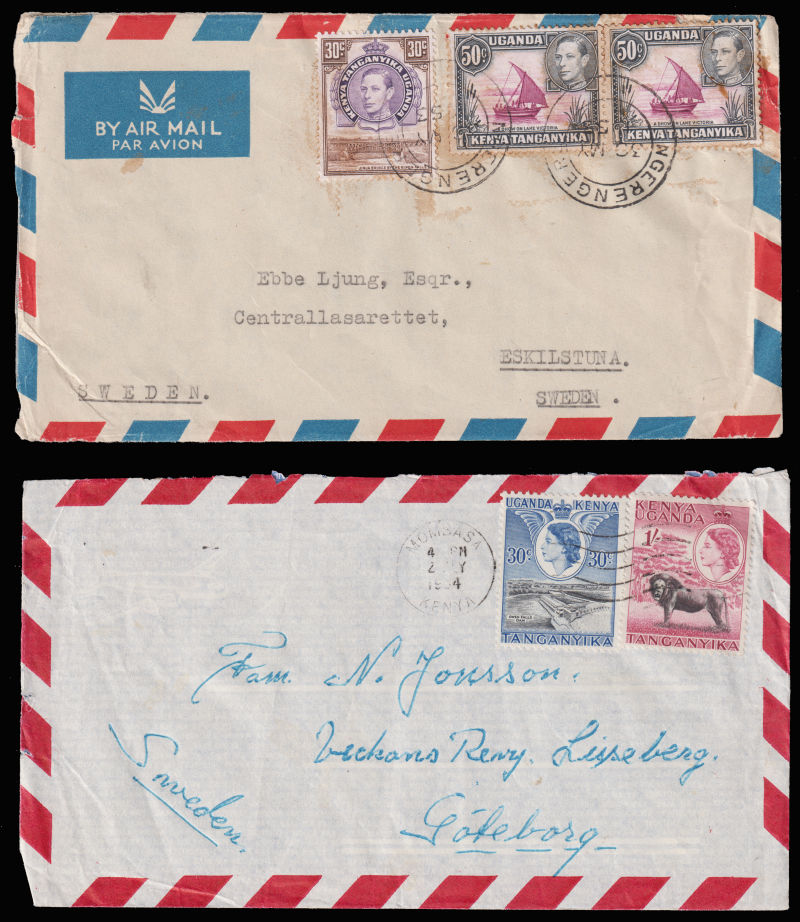 851 c   imageKENYA, Uganda and Tanganyika four covers sent to Sweden, one missing back flap. (Image) (image11) (image21) (image31) (All Images)