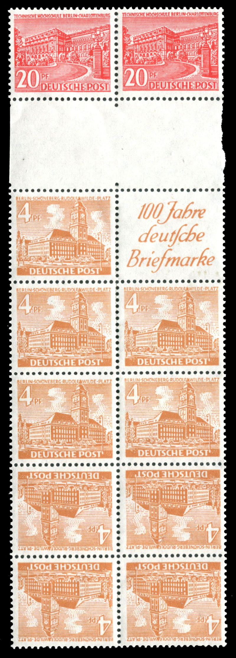 857 ★★   imageGERMANY Berlin 1949 Buildings booklet pane with 4pf x 9 incl tete beches and 20pf x 2. NH. Mi:43, SC:43-b (Image)