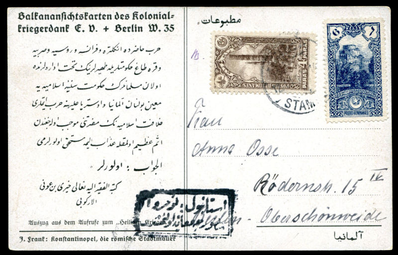 892 PPC   imageTURKEY 1917 Special Fieldpost card sent from German Soldier in military hospital in Istanbul to Germany, with FELDPOST Konstantinopel cds. (Image) (image11) (All Images)