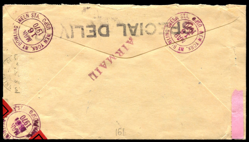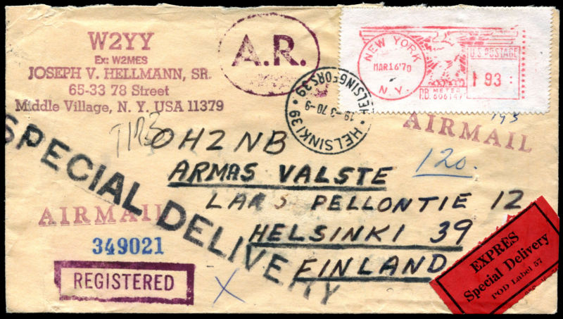 895 c   imageUSA 1970 Airmail AR cover sent from New York to Helsinki, Finland franked with postal stamp meter label, with Special Delivery marking and EXPRESS label. Addressed to Armas Valste, Finlands prominent sportsman, born 1095 in Turku. (Image) (image11) (All Images)