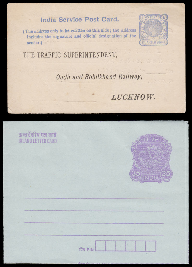 923 PSC   imageINDIA Three pre-stamped India Post Cards and one Inland Letter Card, all with Railway related informations, two postal used. (Image) (image11) (image21) (image31) (All Images)
