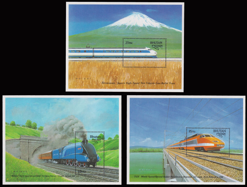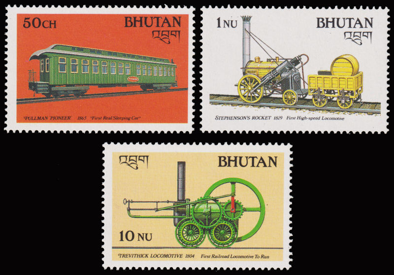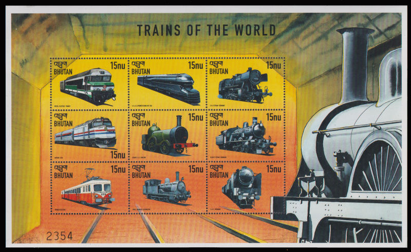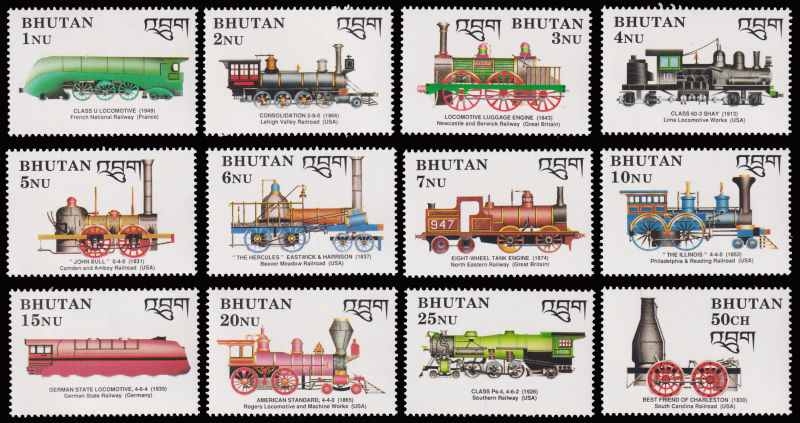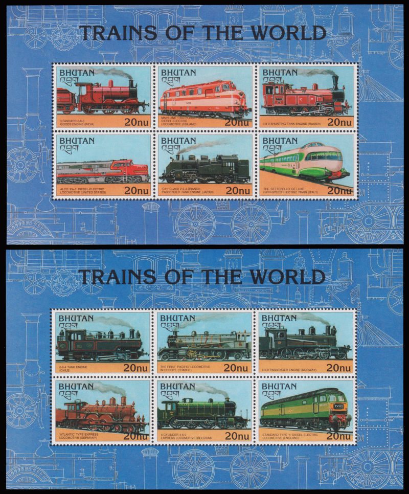 932 ★★   imageBHUTAN 1988 Mi:1060,1061,1069 Bl 159-61 Trains. (Image) (image11) (All Images)