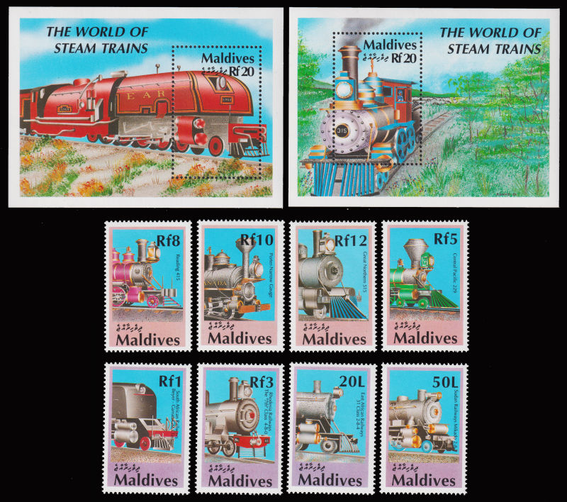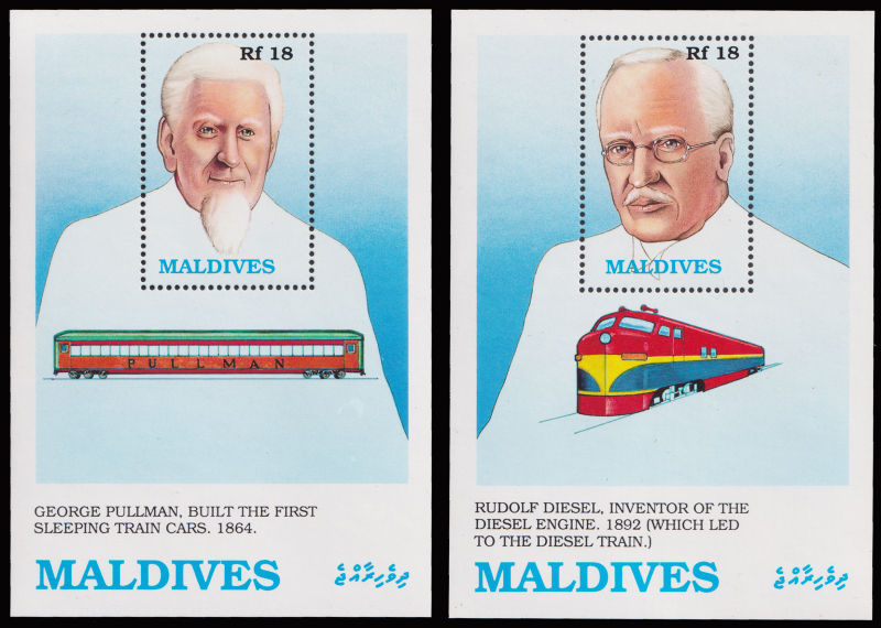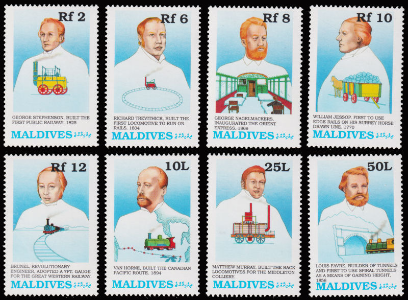 939 ★★   imageMALDIVE 1989 Mi:1385-92 Bl161-162 Railway pioneers set incl. MS. (Image) (image11) (All Images)