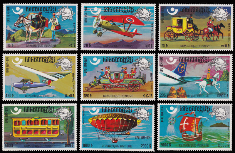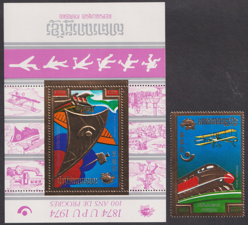 935 ★★   imageCAMBODIA 1975 Mi:433-41A,442A, Bl126A 100th Anniv. of UPU (Image) (image11) (All Images)