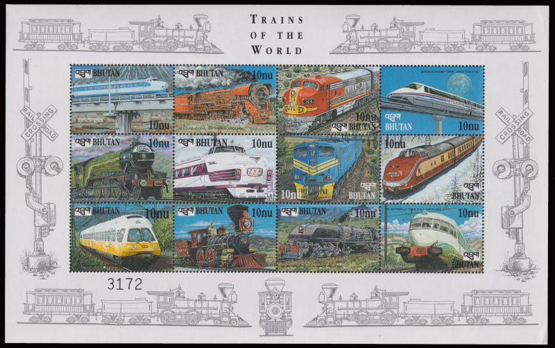 934 ★★   imageBHUTAN 1999 Mi:1819-1852 Bl 385-86 Trains. (Image) (image11) (image21) (image31) (All Images)